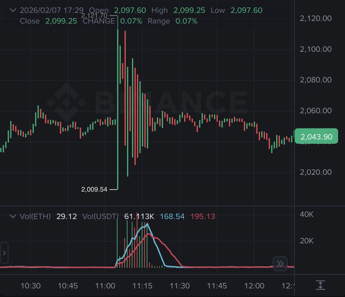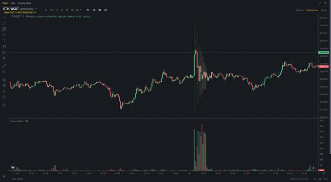 幣安剛剛發生了一起大規模犯罪事件。 在短短 15 分鐘內,ETH的價格反覆波動,漲跌幅超過 100 美元。 每分鐘有價值130億美元的產生和消亡。 此次操作成功平倉了大量ETH多頭頭寸。