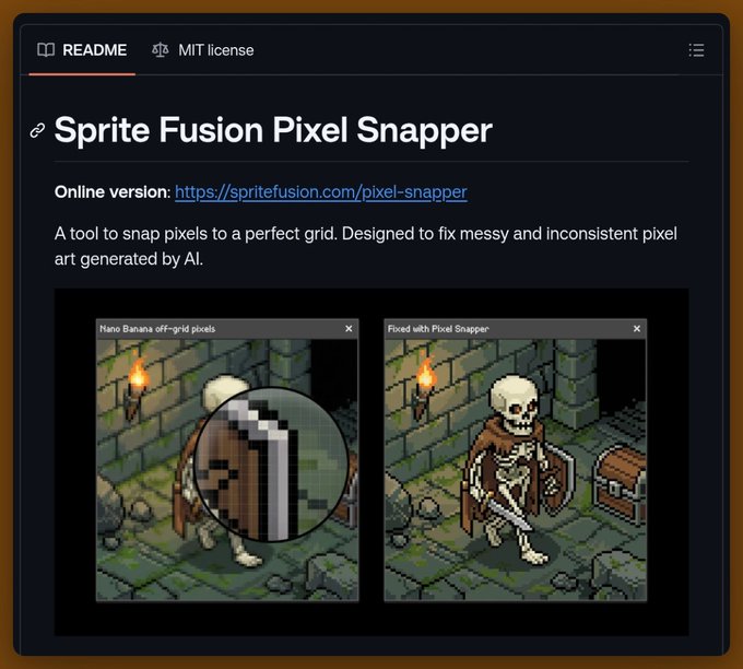 一款可以將像素對齊到完美網格的工具。旨在修復人工智慧生成的雜亂無章、不一致的像素畫。